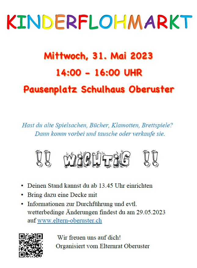 Am 31. Mai 2023 findet der dritte Kinderflohmarkt auf dem Pausenplatz statt.