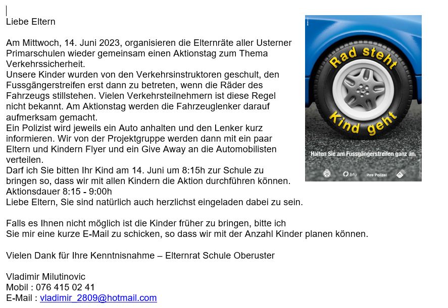 Am Mittwoch, 14. Juni 23 findet der Aktionstag „Rad steht, Kind geht“ statt.