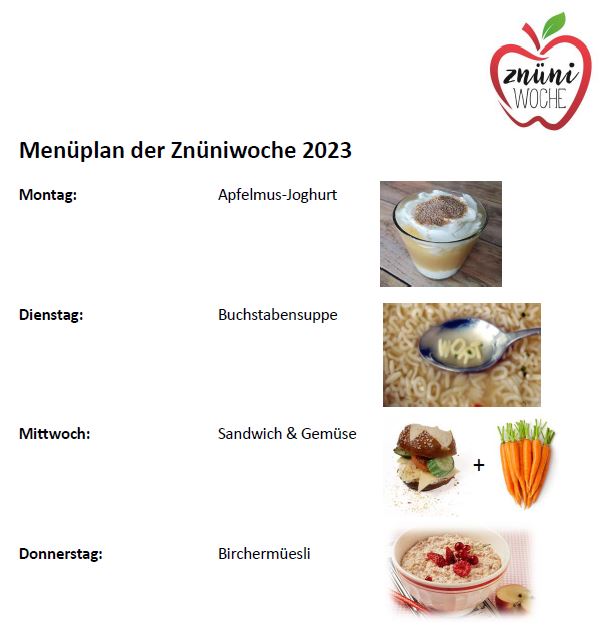 Wieder steht die beliebte Znüniwoche vom Montag, 02. bis Donnerstag, 05. Oktober 23, an!