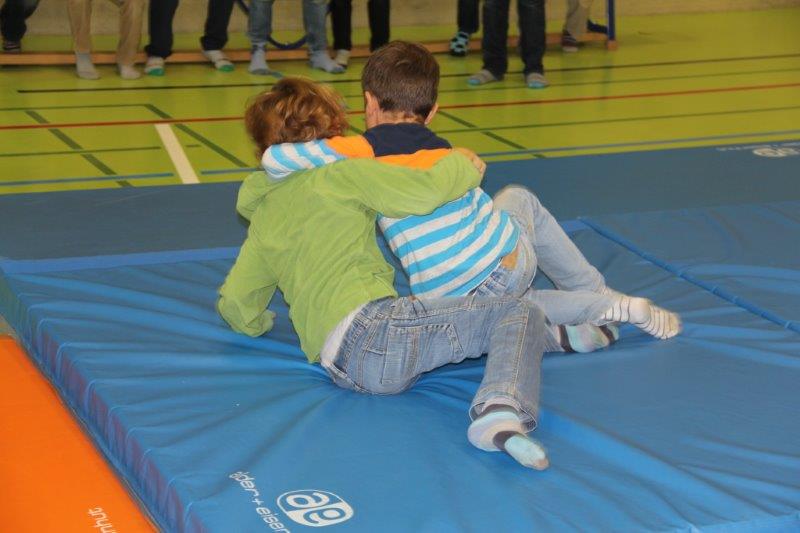 Einmal im Jahr, für etwa eine Woche lang, dürfen die Schüler während der 10.00 Uhr Pause in der Turnhalle ringen – allerdings unter klaren Regeln. Diese Aktion ist bei den Kindern sehr beliebt.