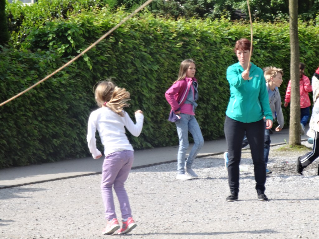 Einmal pro Jahr, während der 10.00 Uhr Pause, können sich die Kinder beim Seilhüpfen auspowern.